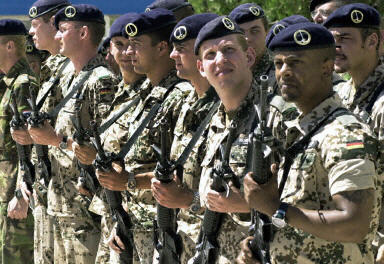 8月11日,“和平使命―2007”联合反恐军演6方参演部队在俄罗斯车里雅宾斯克共同举行誓师大会。