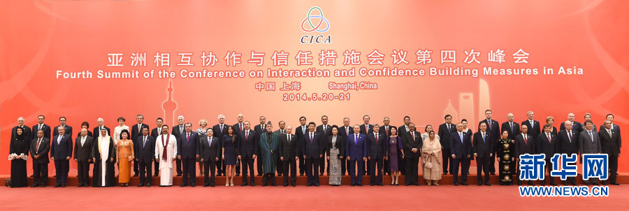 2014年5月20日,亚信第四次峰会在上海举行。来自46个国家和国际组织领导人或代表与会。晚上,国家主席习近平在上海国际会议中心举行宴会,代表中国政府和人民,欢迎前来出席亚洲相互协作与信任措施会议第四次峰会的各国贵宾,并共同观看“团结和谐的亚洲-携手向明天”文艺晚会。