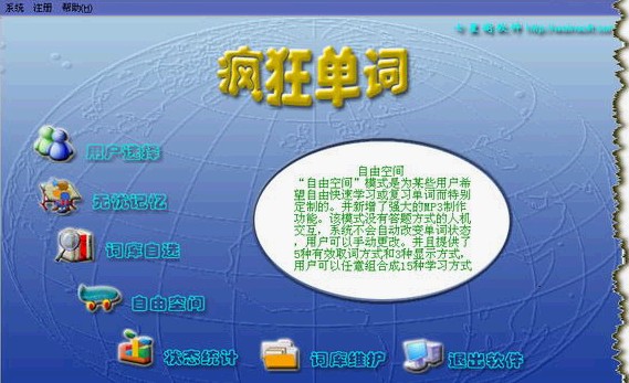 [6]休闲记忆也疯狂,内嵌了疯狂单词屏保全屏动画和英文播放机和标题栏记忆等诸多流行软件的优势功能,