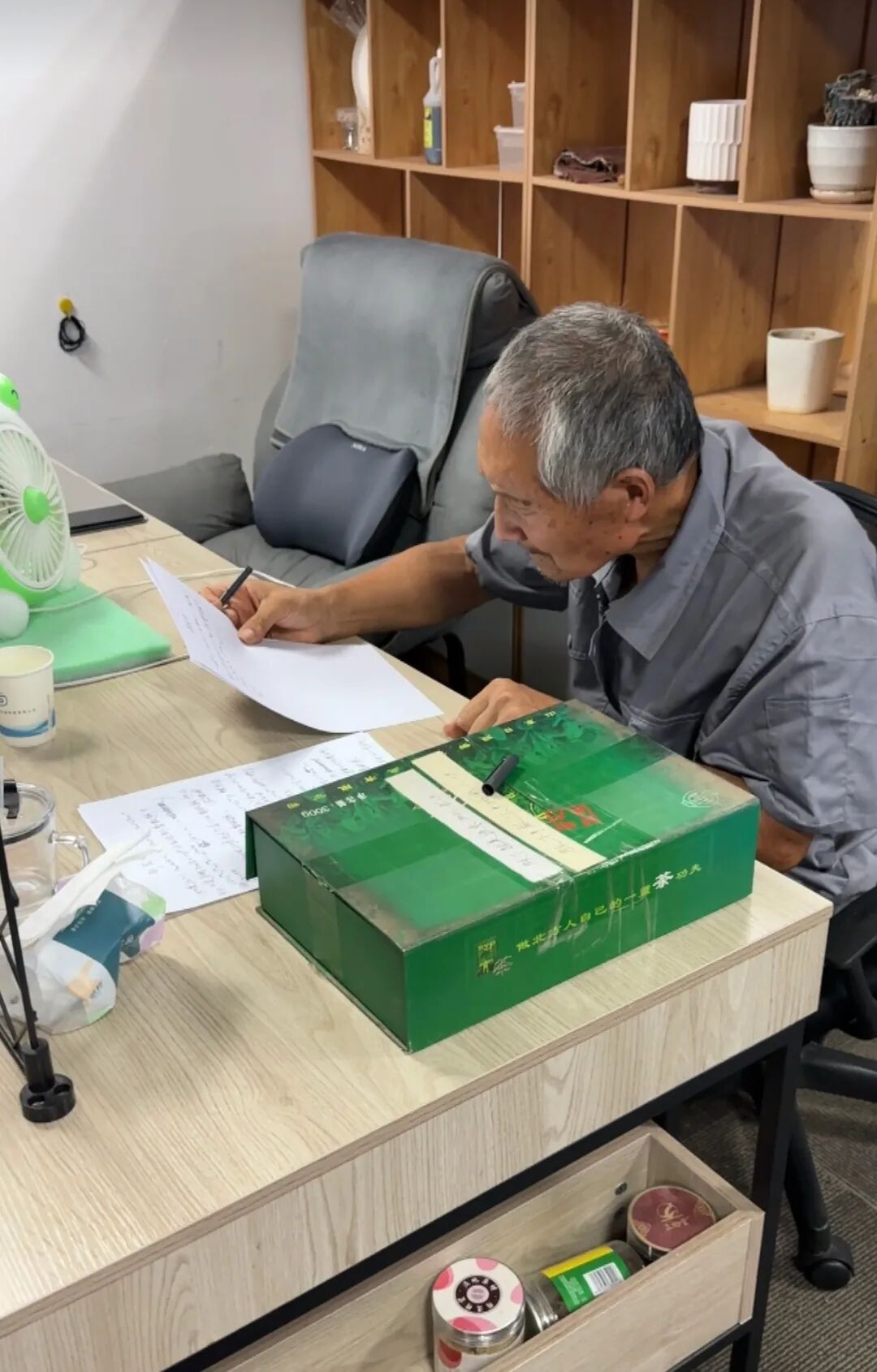 一切的转折,源自一条视频。视频中的他,捧着一个捡来的绿色茶叶包装盒,里面满满当当存放着他的数学演算手稿。纸盒被胶带缠了一圈又一圈,上面贴着他亲手写下的两句警言:“放下!放下!”“放下就是快乐”。可胶带缠了又拆,纸盒合了又开,他终究没能放下。