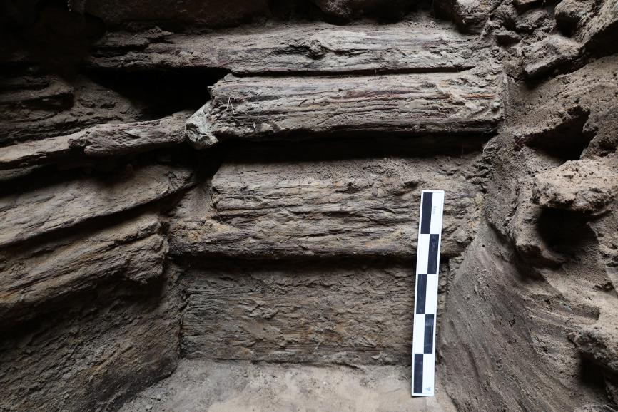在建筑营造上,基址50严格遵循中原高等级建筑工序,从基槽开挖、夯筑地基到台基修筑、木构搭建,规制严谨,技艺精湛,以中式大殿作为浴场核心门厅,凸显中原礼制文化的主导地位,与新疆唐朝墩古城浴场形成鲜明差异,尽显游牧王朝对中原文明的吸纳传承。